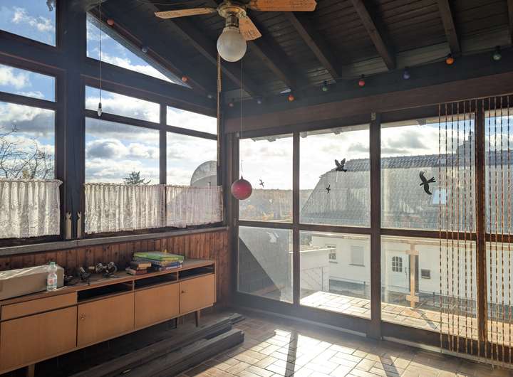 Die Küche mit Blick zur Straße, das angrenzende Esszimmer sowie der nachträglich errichtete Wintergarten mit herrlicher Aussicht über das Weilburger Tal. Hier lassen sich gemütliche Stunden mit Familie und Freunden verbringen.