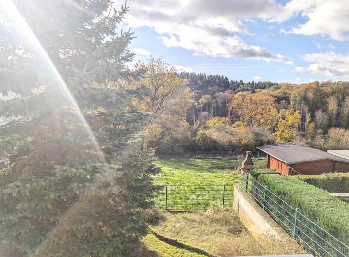 Das sonnige Grundstück in Südwestlage bietet viel Platz zum Gestalten und Entspannen. Der Balkon über die gesamte Hausbreite eröffnet einen wunderschönen Weitblick ins Grüne.