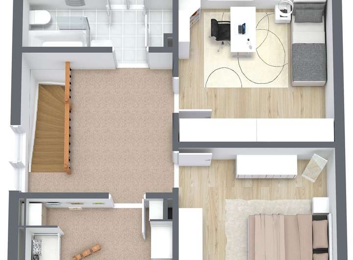 Das Haus verfügt weiterhin über einen Dachboden, der über eine Einschubtreppe zu begehen ist. Hier befinden sich aktuell zwei Zimmer. Der Ausbau des Dachbodens eröffnet die Chance zusätzlichen Wohnraum beispielsweise für ein Arbeits- oder Gästezimmer zu realisieren. Bitte beachten Sie, dass uns für den Dachboden kein Original-Grundrissplan/ Architektenplan vorliegt und deshalb auf eine Darstellung als Grundriss verzichtet wird.