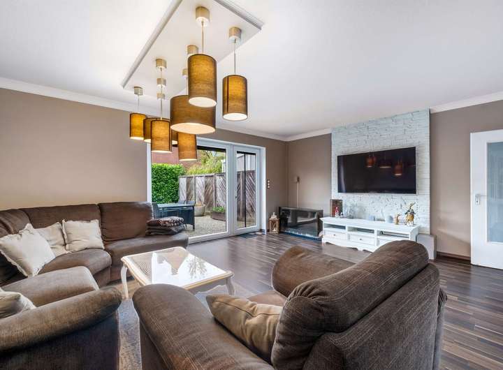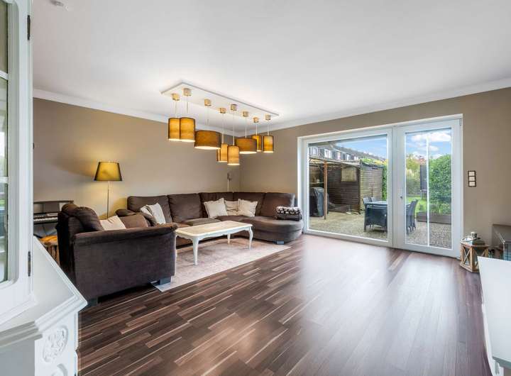 Dieses gepflegte Reihenmittelhaus aus dem Baujahr 1974 bietet ca. 159 m² großzügige Wohnfläche verteilt auf drei Ebenen sowie insgesamt 6 Zimmer, davon 5 Schlafzimmer. Das Anwesen befindet sich auf einem 255 m² großen Grundstück und überzeugt durch eine funktionale Raumaufteilung, ideal für Familien oder Personen mit Platzbedarf für Home-Office, Gäste oder Hobbyräume. Eine Garage mit direktem Zugang zum Garten rundet das Angebot ab.