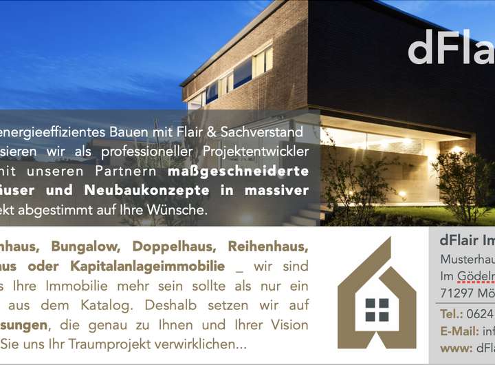 • Mit unseren Partnern gibt es keine unveränderbaren Typenhäuser, somit sind wir in der Lage sämtliche Bauherrenwünsche umzusetzen und an alle Bebauungsvorschriften anzupassen.