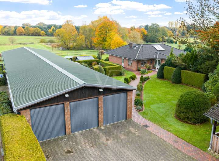 Das perfekte Ensemble- Bungalow, große Halle, Traumgrundstück!