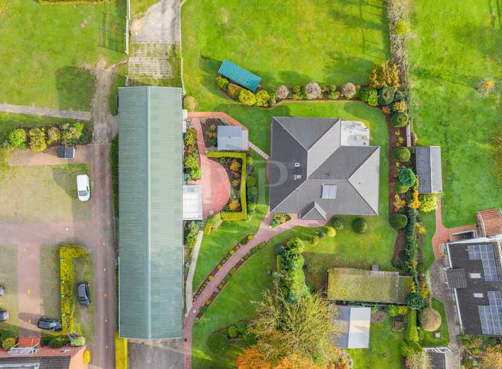 Dann haben wir das passende Ensemble für Sie gefunden. Es liegt auf einem ca. 2.400 m² großen, traumhaften Grundstück mit Blick auf Wiesen und Felder. Das Ensemble besteht aus einer ca. 400 m² großen, funktionalen und stabilen Halle mit vielen Nutzungsmöglichkeiten (z. B. Pferdehaltung, Oldtimersammlung, Wohnmobile und vieles mehr) sowie einem barrierefreien Bungalow.
