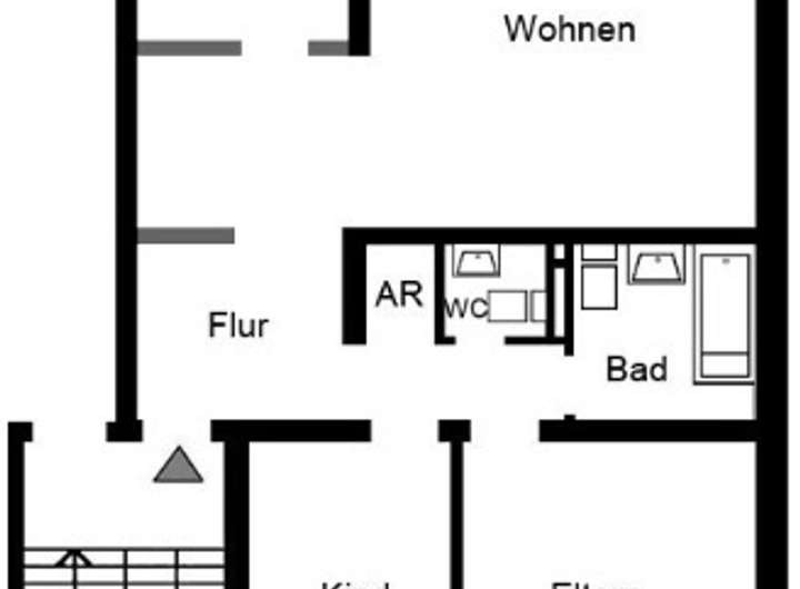 3 Zimmer (Wohnzimmer, Schlafzimmer, Kinderzimmer) sowie