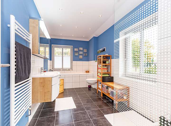 - Fußbodenheizung, in jedem Raum einzeln regulierbar (jeweils zusätzlicher Handtuchheizkörper in beiden Bädern)