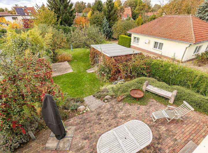 - Gepflegter Garten mit idealer Größe und verschiedenen Aufenthalts- u. Nutzungsbereichen
