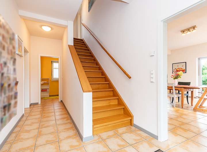 Das in 2013 errichtete Haus besteht aus einem Erdgeschoss und einem Obergeschoss. Durch die Raumaufteilung bietet es für Sie und Ihre Liebsten beste Voraussetzungen für eine optimale Nutzung. Über den rein pragmatischen Aspekt hinaus, besticht es durch seine tolle Belichtung und die warme und wohlige Ausstrahlung. Die Tatsache, dass fast alle Zimmer zweiseitig belichtet sind, sorgt für die gute Helligkeit und Belüftbarkeit, und die in Relation zu den Raumgrößen angenehme Deckenhöhe auf beiden Etagen trägt zur Harmonie des Hauses bei. Außerordentlich angenehm ist auch, dass es im Obergeschoss keine Dachschrägen gibt, so dass alle Wände ausreichend Stellfläche bieten.