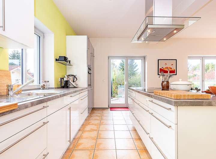 - Geräumige Küche mit viel Stauraum und großer Kochinsel