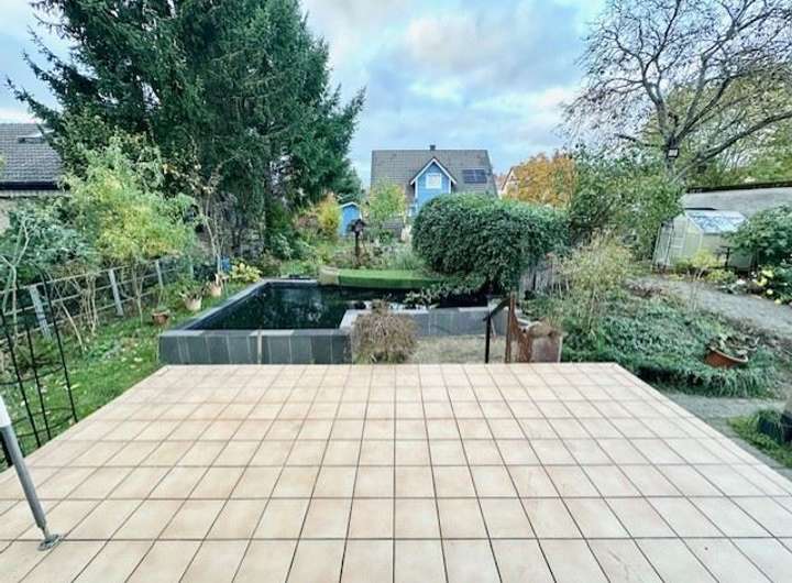 Die Erdgeschosswohnung präsentiert sich in gepflegtem Zustand mit einer zeitgemäßen Ausstattung und einem durchdachten Grundriss. Alle Räume sind mit doppelverglasten Kunststofffenstern aus den Jahren 2007 und 2021 ausgestattet, was für gute Energieeffizienz und angenehme Lichtverhältnisse sorgt. Das Tageslichtbad mit Badewanne ist funktional ausgestattet. Das Wohnzimmer und das Bad sind gefliest, während in den übrigen Räumen pflegeleichter Laminatboden verlegt wurde, der ein warmes Wohngefühl vermittelt. Ein besonderes Highlight ist die großzügige Terrasse mit Blick auf den liebevoll angelegten Koi-Karpfen-Teich – ein idealer Ort zum Entspannen und Genießen. Die Wohnung verfügt zudem über eine hochwertig ausgestattete Einbauküche, die sowohl optisch als auch funktional überzeugt und im Gesamtbild einen modernen Akzent setzt.
