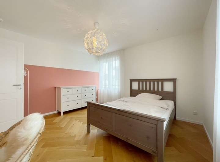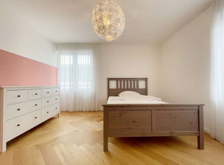Ein ruhiges Schlafzimmer (ca. 14 m²) bietet Zugang zur Dachterrasse, eine begehbare Ankleide en Suite und ein schickes Tageslichtbad mit Badewanne und Dusche sind verfügbar. Das Kinder/ - oder Arbeitszimmer liegt bei ca. 15 m² und ein Gäste- WC komplettiert das Wohnangebot.