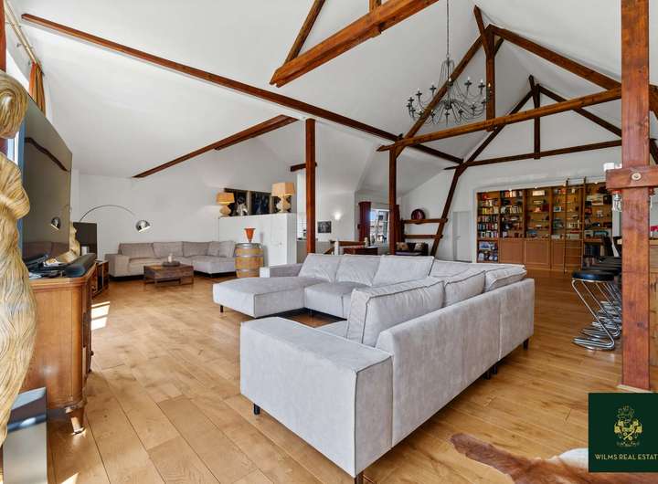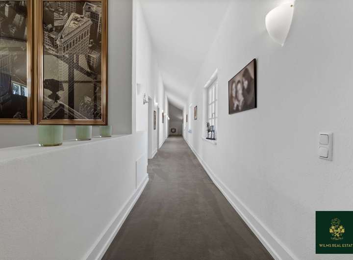 Das im 19. Jahrhundert erbaute Hauptgebäude wurde zwischen 2006 und 2008 aufwendig kernsaniert, sowie deutlich erweitert. Es erstreckt sich auf ca. 835m2 Wohnfläche und präsentiert sich heute als perfekte Symbiose aus traditionellem Flair und zeitgemäßer Eleganz.