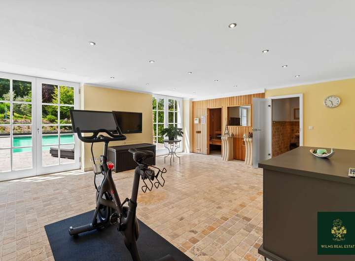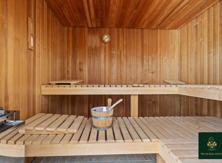 Rechts des Entrées befinden sich ein Ankleideraum, der exklusive Spa-Bereich mit Gym, Sauna und eigener Dusche, sowie ein Gästezimmer mit Bad-en-Suite – ideal für Besucher oder Familienmitglieder.