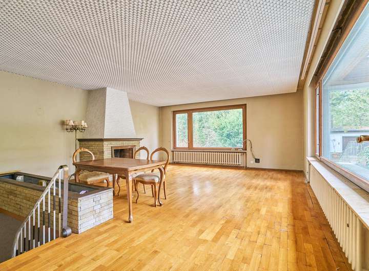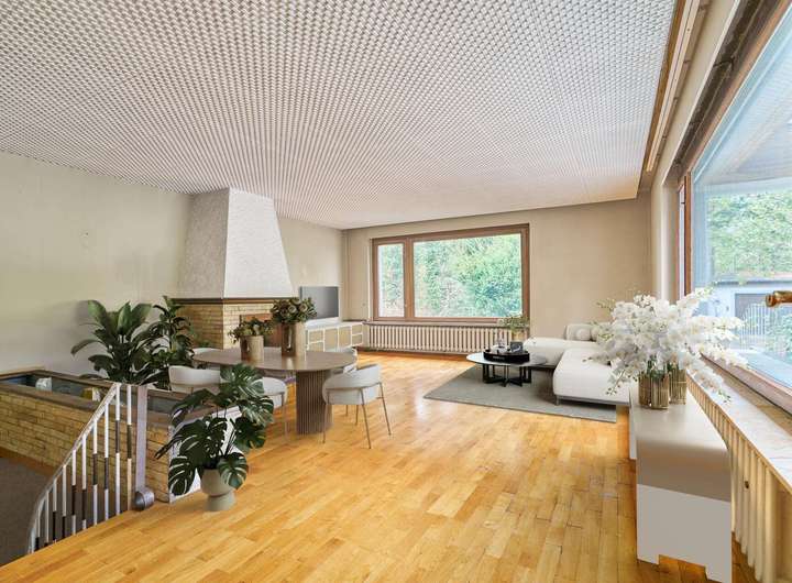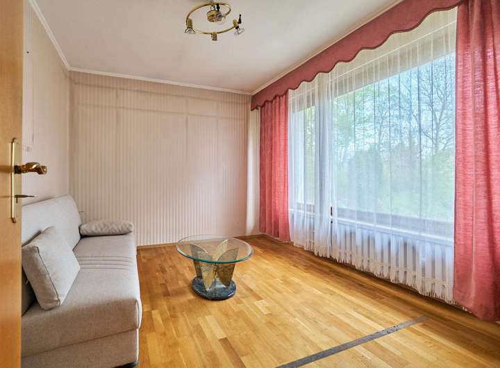 Die Wohnfläche von ca. 192 m² verteilt sich auf ein großzügig geschnittenes Erdgeschoss und ein teilweise ausgebautes Untergeschoss. Das lichtdurchflutete Wohnzimmer mit großem Fenster zum Garten bildet das Herzstück des Hauses. Hier bietet sich viel Platz für individuelle Wohnkonzepte – vom gemütlichen Familienleben bis hin zum stilvollen Rückzugsort. Zwei weitere Zimmer im Erdgeschoss lassen sich flexibel als Schlafzimmer, Gäste- oder Arbeitszimmer nutzen. Die Küche ist funktional geschnitten und bietet Tageslicht, ein Badezimmer ergänzt das Raumangebot auf dieser Etage.
