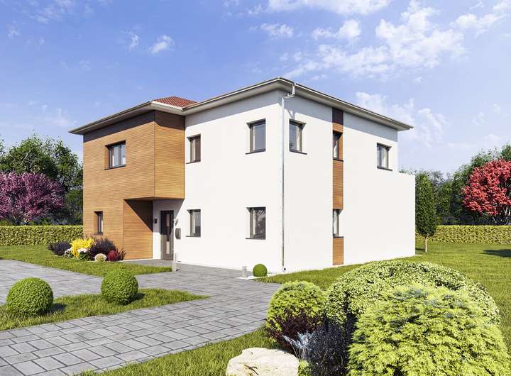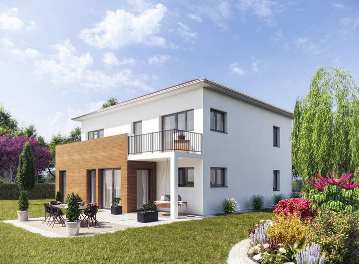 Schick plazieren in das für dieses exklusiv in Entstehung befindliche Wohngebiet läßt sich die Villa EDITION AVANDGARDE der ELM BAU.