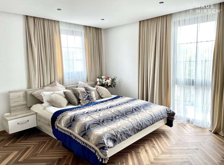 Das Haus verfügt über 5 Zimmer,, 1 Arbeitszimmer, 2 Schlafzimmer und 2 Bäder, sowie 1 separates Gäste-WC im Erdgeschoss. Die Bäder sind mit edlem Marmor ausgestattet wie auch das Erdgeschoss (Wohnzimmer & Küche). Ab der 2ten Etage sind alle Räume mit hochwertigem Parkett ausgestattet. Ein besonderes Highlight ist der einladende Kamin im Wohnzimmer, der für eine gemütliche Atmosphäre am Abend sorgt. Ebenso können sie die farbreiche Smarthome-Aktezent-Beleuchtung im ganzen Erdgeschoss nach Ihrer Stimmung einstellen.