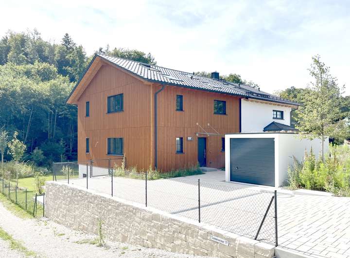 Das Haus wurde von Baufritz in hochwertiger Holzständerbauweise errichtet und erfüllt höchste ökologische Standards. Mit perfekter Bioqualität, A+ Energieeffizienzklasse und einer nahezu autarken Versorgung steht dieses Objekt für gesundes, zukunftsorientiertes Wohnen. Die geschmackvolle Holzfassade unterstreicht den nachhaltigen Charakter und fügt sich harmonisch in das gewachsene Umfeld ein.