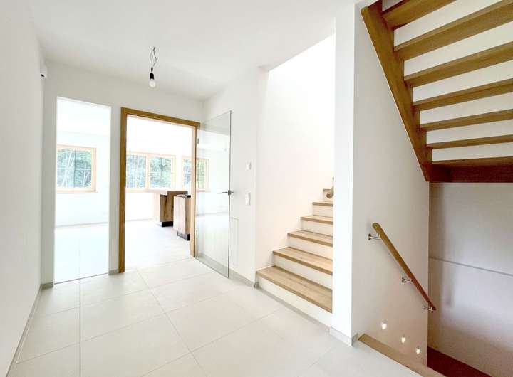Dieses A+ Baufritz-Haus wurde in ökologischer Holzständerbauweise errichtet und überzeugt durch ein zukunftsweisendes Energiekonzept. Eine Photovoltaikanlage mit 7,6 kWp Leistung, integriertem Speicher und Notstromfunktion in Kombination mit einer effizienten Sole/Wasser-Wärmepumpe mit Erdwärme sorgt für eine weitgehende energetische Unabhängigkeit. So genießen Sie höchsten Wohnkomfort bei minimalen Hausnebenkosten.