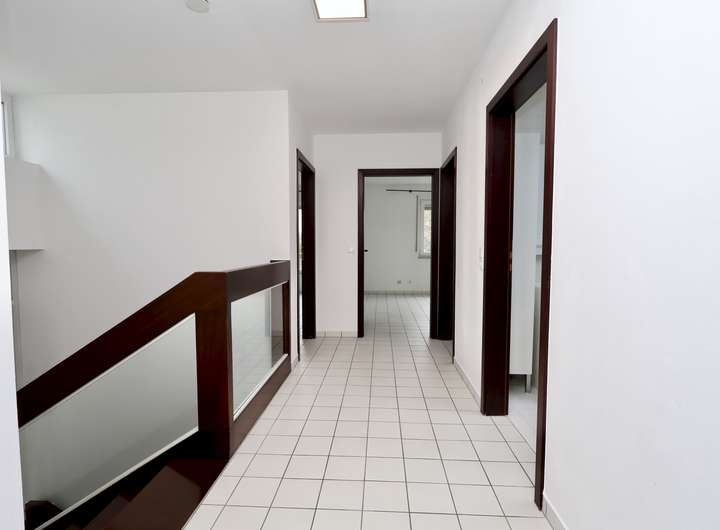 Die Hauptwohnung erstreckt sich mit 4 Zimmern, Küche, Wohndiele, 2 Bädern und Gäste-WC über das Erd-, Ober- und ebenerdige Gartengeschoss. Die Einliegerwohnung verfügt über 1 Zimmer, Küche, Bad. Im Außenbereich lädt die große Terrasse mit den zwei Ebenen zum Wohlfühlen ein und der schöne Garten ist eine Oase zur Erholung und Entspannung.