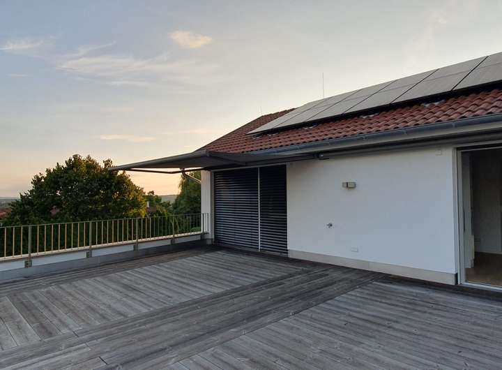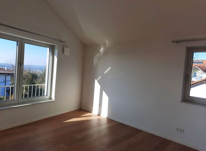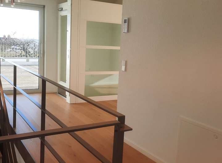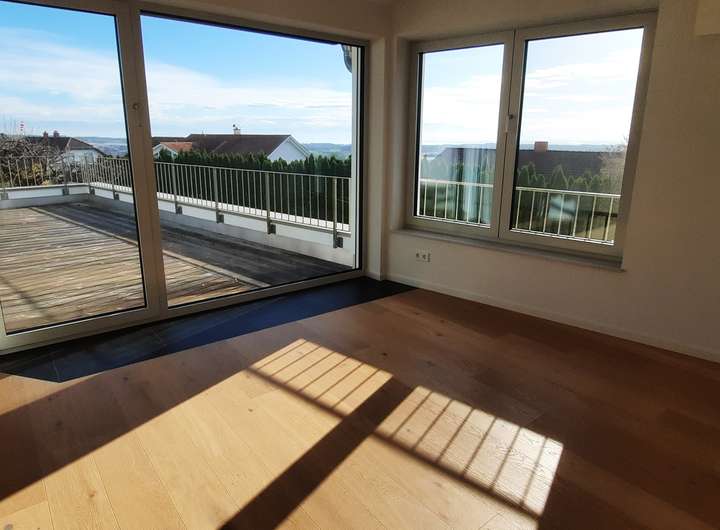 Das gepflegte Nichtraucherhaus bietet moderne Ausstattung und großzügige Raumgestaltung. Hier wohnen Sie lichtdurchflutet und stilvoll auf 2 Wohnebenen – mit Aufzug für barrierefreies Wohnen, Garten- und Dachterrasse und Panoramablick auf den Bodensee und die Alpen.