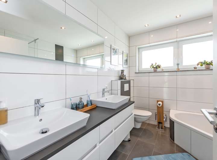 - Tageslichtbäder mit Dusche, Badewanne und WC