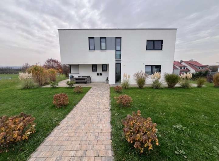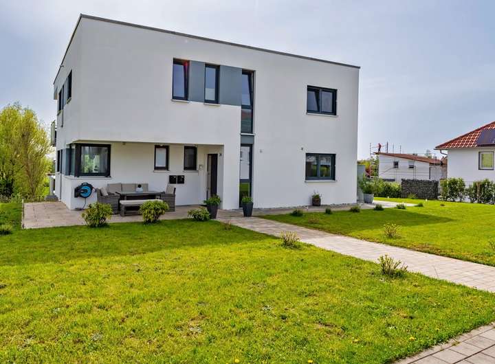Dieses moderne Zweifamilienhaus begeistert durch seine zeitlose Architektur, großzügige Raumgestaltung und hochwertige Bauweise.