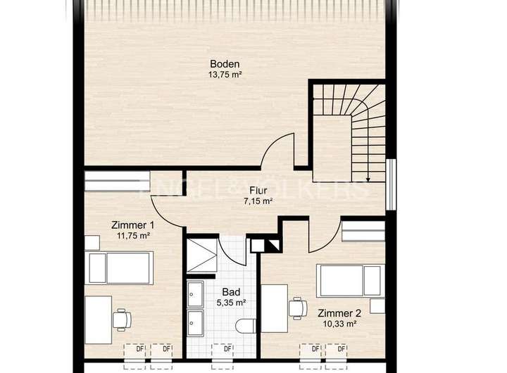 Hier befinden sich gemütliche Schlafzimmer mit ca. 10 und 12 m² Wohnfläche, jeweils ausgestattet mit zwei Dachflächenfenstern für angenehmes Tageslicht. Ergänzt wird das Obergeschoss durch ein weiteres Duschbad sowie eine ca. 14 m² große Ausbaureserve, die derzeit als Stauraum genutzt wird – ideal für zukünftige Wohnwünsche.