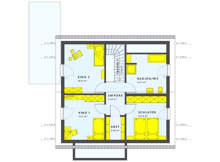Auch die Ausstattungsberatung in der Haus-Statterei steht dir zur Verfügung, begleitet von einem Bodengutachten durch erfahrene Architekten. Die Ausstattung umfasst zudem eine vorkonfigurierte I-KON-Lösung inklusive PV-Anlage mit Speicherbatterie und Wärmepumpentechnik für effizientes Heizen. Bodengleiche Duschen und Aluminiumrollläden runden das Paket ab.