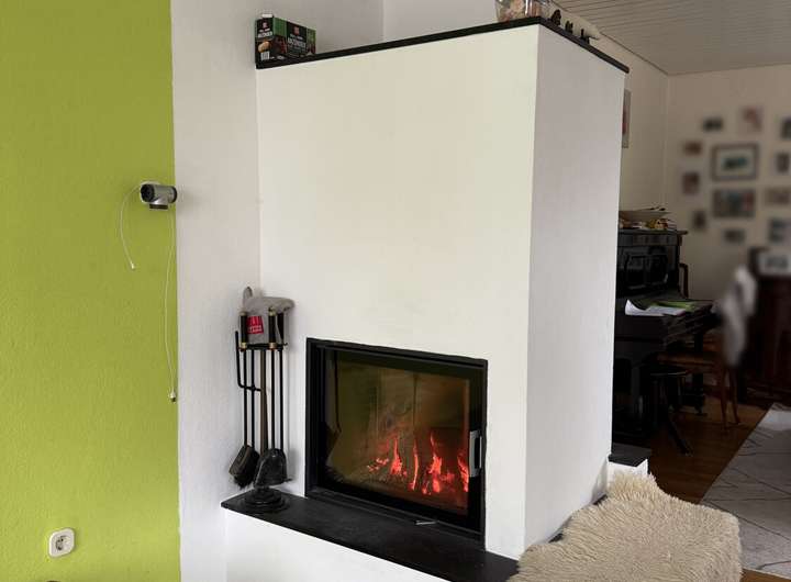 Die Beheizung erfolgt über einen effizienten Holzofen mit einem realen Jahresverbrauch von rund 15 m³ Holz.