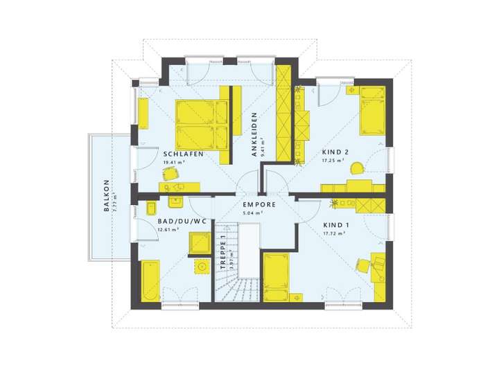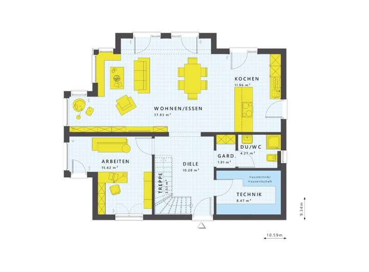 Die auf den Bildern gezeigte Hausvariante kann Elemente enthalten, die nicht im Standardhauspreis inkludiert sind.
