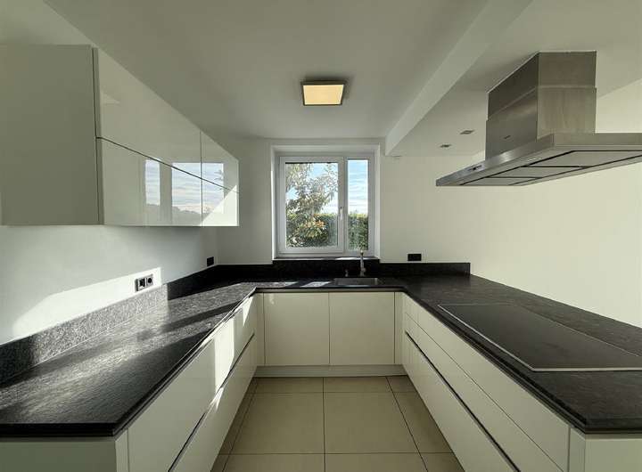 Küche: Moderne U-Form-Küche mit Granit-Arbeitsplatte, Siemens-Geräten, separatem Block (Backofen, Kühlschrank, Gefriertruhe)