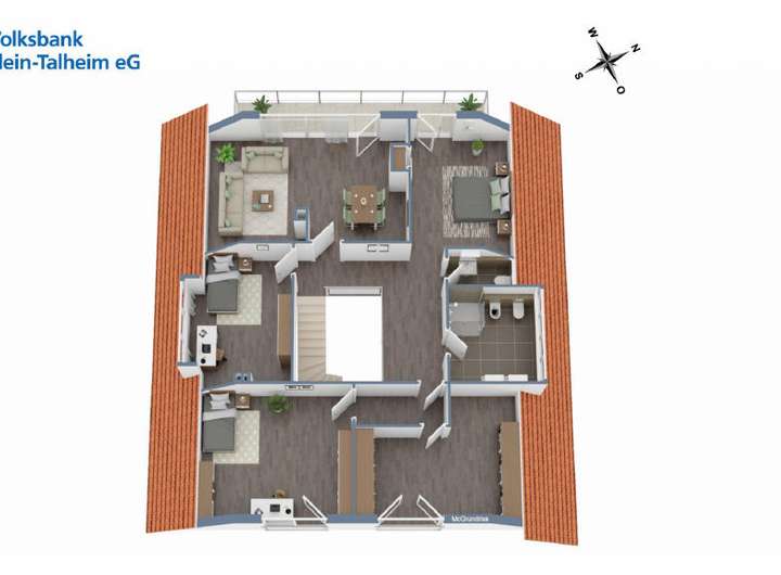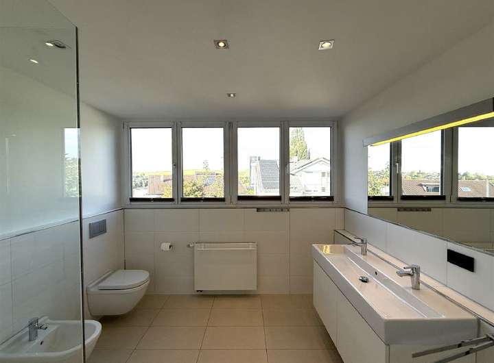 - DG: Bad mit Doppelwaschbecken, Bidet, WC, Dusche in Dachgaube