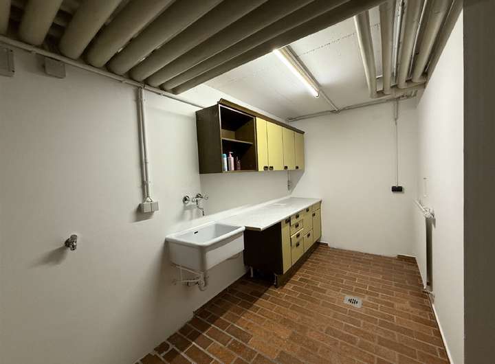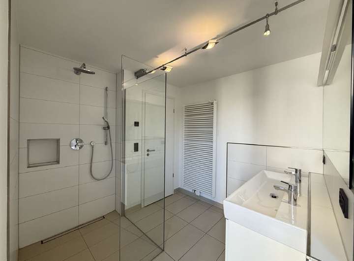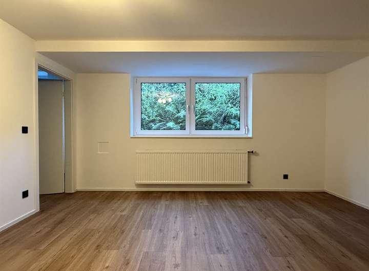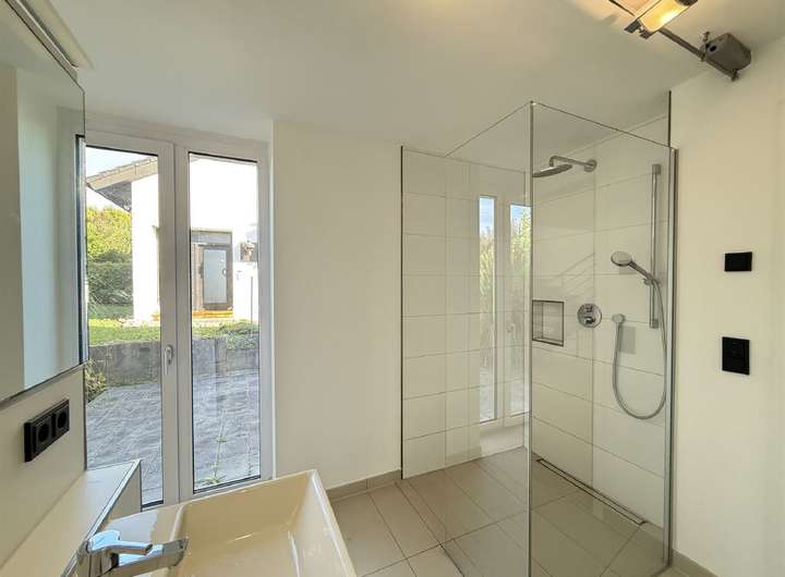 Im Untergeschoss erwartet Sie ein Vorraum mit Einbauschrank, ein Kellerraum mit Schaltschrank sowie ein Hobbyraum, der als Fitness- und Saunabereich genutzt wurde inklusive Dusche. Eine weitere Waschküche mit Einbauschrank und Zugang zum Heizraum (Gasheizung aus dem Jahr 2023) ist ebenfalls vorhanden. Die Einliegerwohnung im Untergeschoss verfügt über ein innenliegendes Bad mit Dusche, WC, Waschbecken und Waschmaschinenanschluss sowie ein Wohnzimmer und ein Schlafzimmer mit Fenster. Der separate Zugang erfolgt über eine Außentreppe hinter dem Haus.