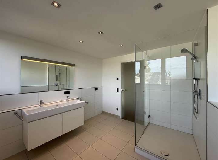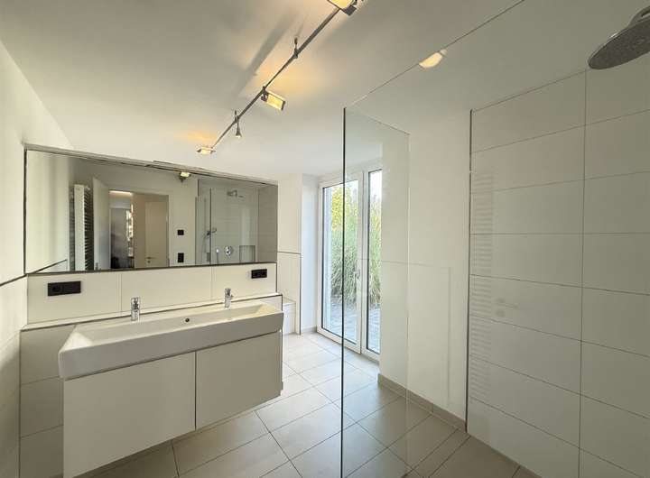 - EG: Großes Bad mit Doppelwaschbecken, begehbarer Dusche, Badewanne, WC