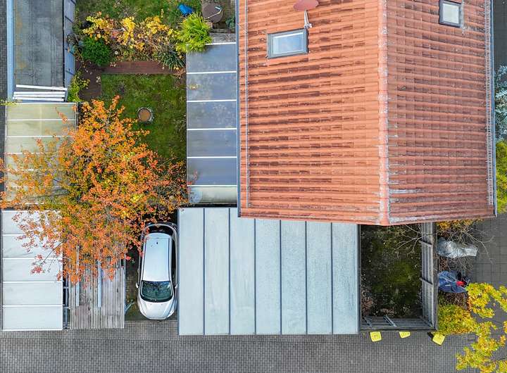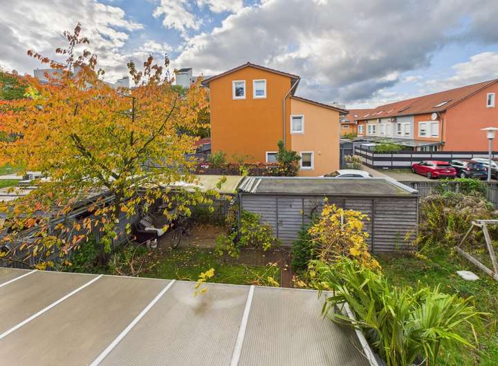 Ein direkter Zugang zum Stellplatz sowie ein Schuppen sind vorhanden.