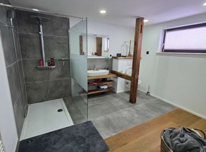 Die beiden Badezimmer, ergänzt durch ein Gäste-WC, garantieren höchsten Komfort im Alltag. Die Verwendung von Fliesen als Bodenbelag bietet nicht nur eine stilvolle Optik, sondern auch eine einfache Pflege und Langlebigkeit. Die letzten Modernisierungen erfolgten 2021. Eine Fußbodenheizung sorgt für wohlige Wärme in jedem Raum und wird durch eine effiziente Luft-Wärmepumpe unterstützt, die umweltfreundlich und kosteneffizient arbeitet.