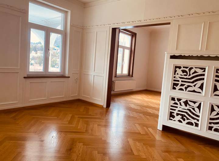 Es ist kein Neubau und keine klassische Villa, sondern ein Liebhaberobjekt mit Charakter: hohe Decken, Stuck, alte Holzböden, Räume mit Geschichte. Vieles wurde erhalten, manches erneuert – mit dem Ziel, den ursprünglichen Charme zu bewahren und gleichzeitig heutigen Wohnkomfort zu bieten.