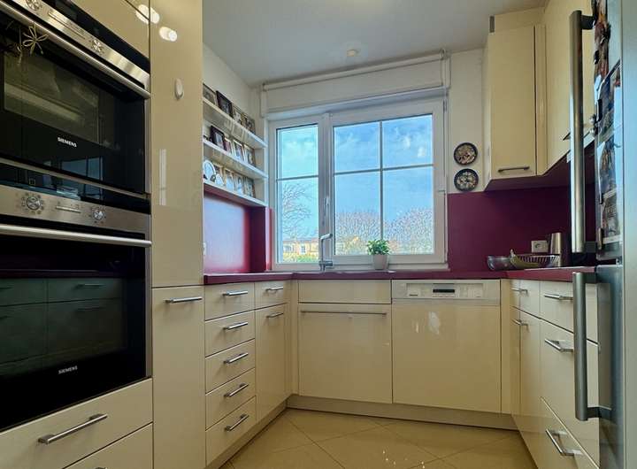 - Cremefarbene Einbauküche mit allen Elektrogeräten