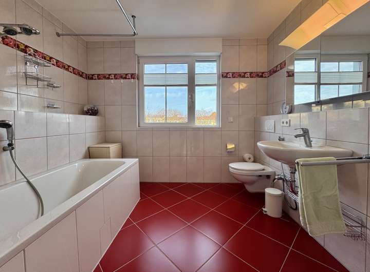 Das Obergeschoss bietet zwei großzügige Schlafzimmer mit ca. 18 m² und 20 m² sowie ein Tageslichtbad mit Badewanne.