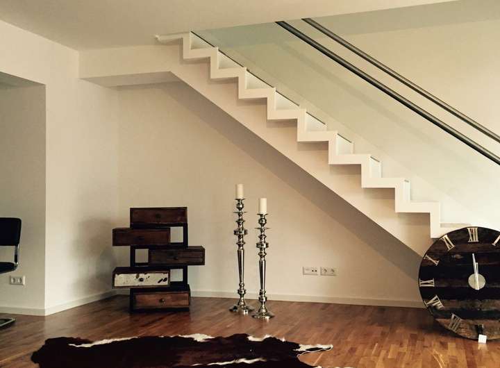 Die 2. Ebene erreicht man über die Treppe vom Wohnzimmer aus.