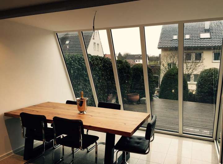 Ein großzügiger Wohn-Essbereich mit Wintergarten (mit Fußbodenheizung) und Zugang zur Terrasse lässt sich wunderbar modern gestalten.