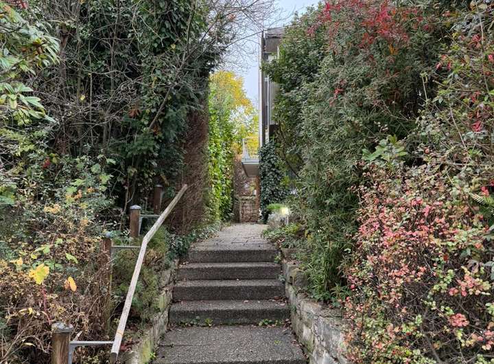 Die DHH befindet sich am Rand des Wohngebietes Hausweinberg in einer nur von Anliegern befahrenen Straße.
