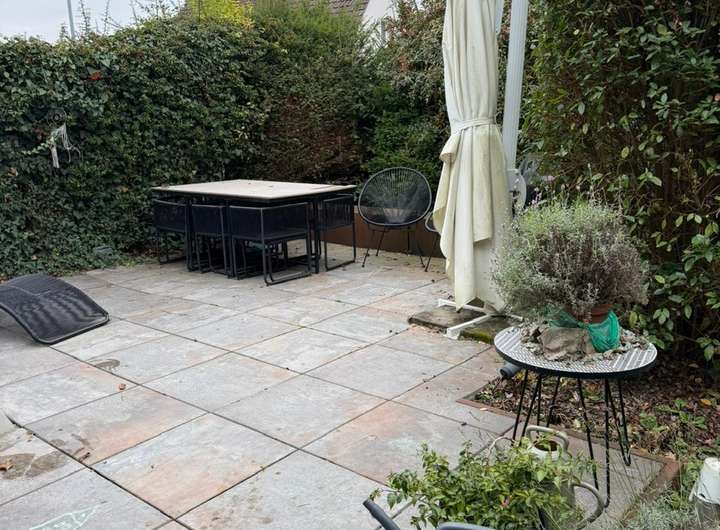 Die Doppelhaushälfte befindet sich in einer ruhigen Straße und ist umgeben von hochgewachsenen Pflanzen, so dass der schöne Terrassenbereich von der Straße her nicht einsehbar ist.