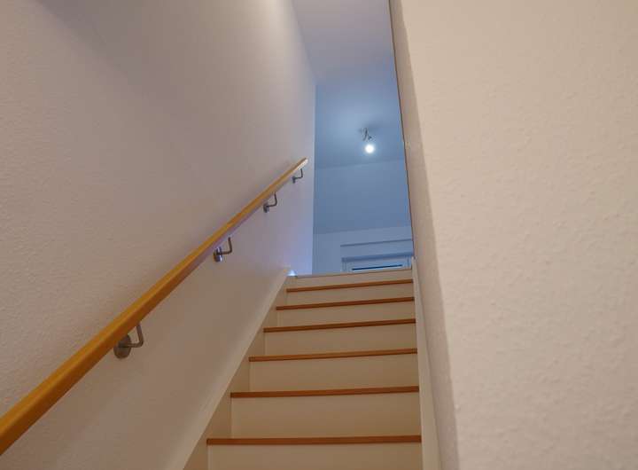 Hinweisen möchten wir auf die platzsparende steile Treppe im Innenbereich, die keine Barrierefreiheit aufweist sowie die nicht unerhebliche Gartenpflege.