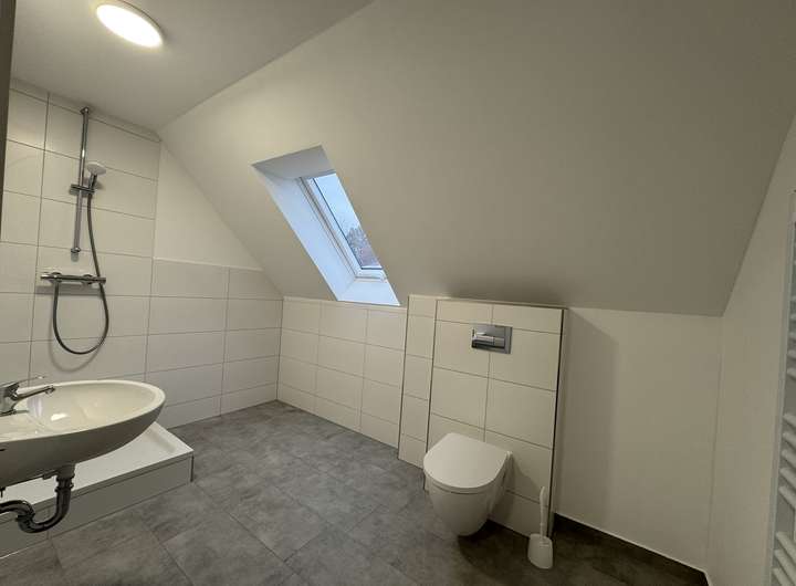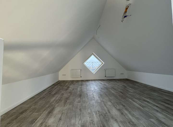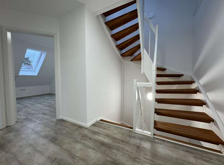 Die offizielle Wohnfläche beträgt ca. 110 m². Zusätzlich steht ein vollständig ausgebautes Dachgeschoss zur Verfügung, das wohnlich genutzt werden kann, aufgrund der Dachschrägen jedoch nicht in die Wohnflächenberechnung einfließt.