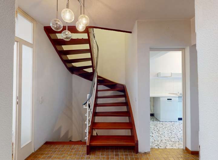 Das Herzstück des Erdgeschosses ist der helle Wohn- und Essbereich mit hochwertigem Parkettboden. Dank der Westausrichtung genießen Sie hier sonnige Nachmittage sowie den direkten Zugang zur Terrasse und dem liebevoll angelegten Garten – perfekt für entspannte Stunden im Freien. Ergänzt wird das Erdgeschoss durch eine separate Küche, ein Gäste-WC sowie ein weiteres Zimmer, das sich ideal als Büro oder Gästezimmer eignet.