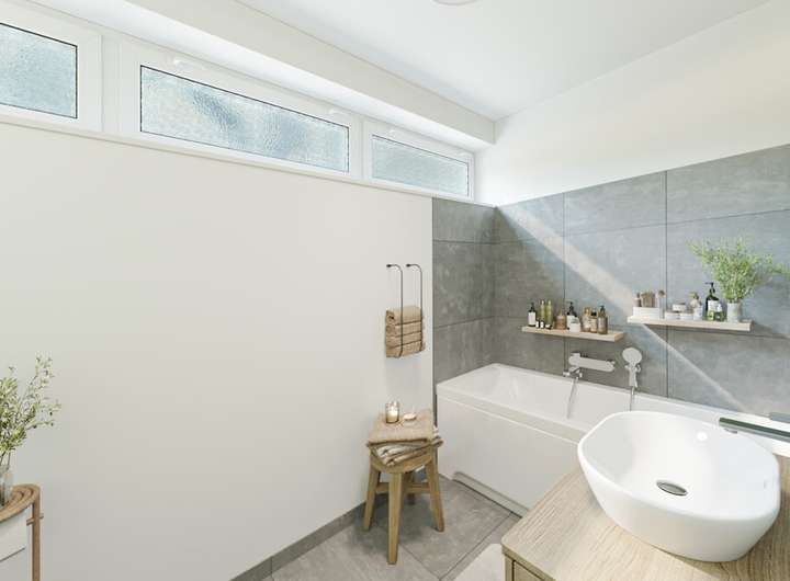 Im Obergeschoss erwarten Sie drei gut geschnittene Schlafzimmer mit pflegeleichtem Vinylboden. Das modernisierte Badezimmer verfügt sowohl über eine Badewanne als auch eine separate Dusche – ideal für den Familienalltag.