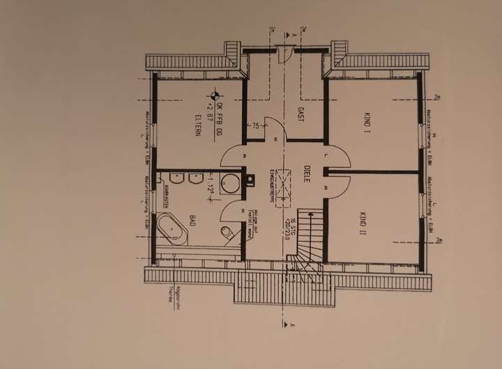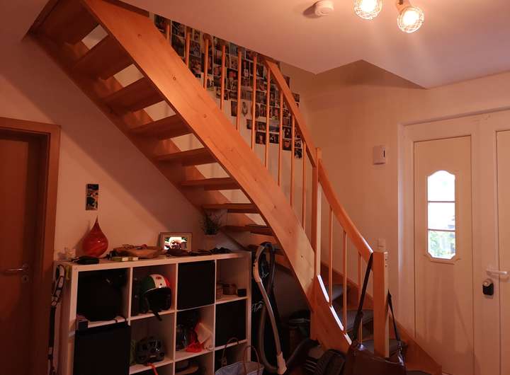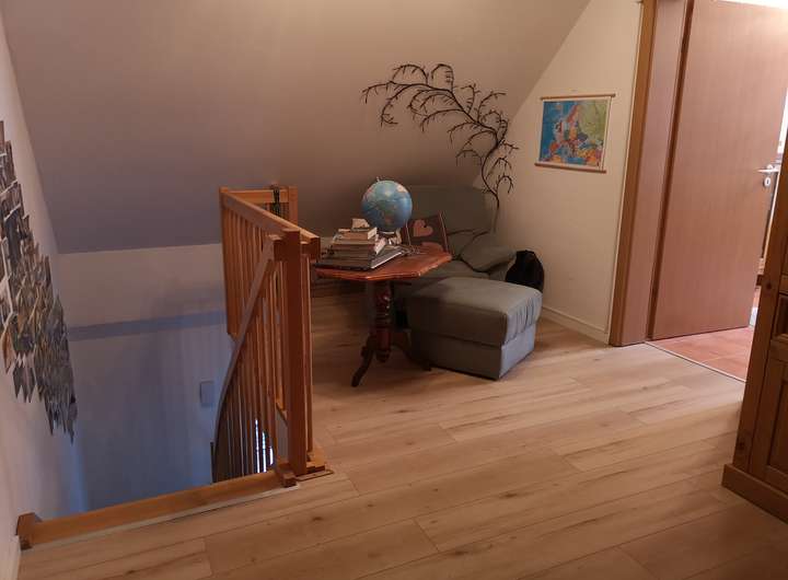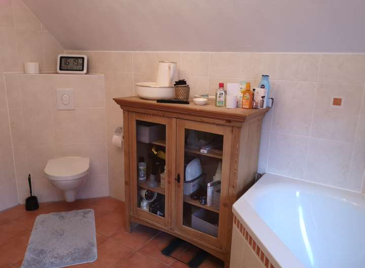 Im Obergeschoß befindet sich das große Badezimmer und 4 weitere Schlafräume. Im Spitzboden können Sachen eingelagert werden.