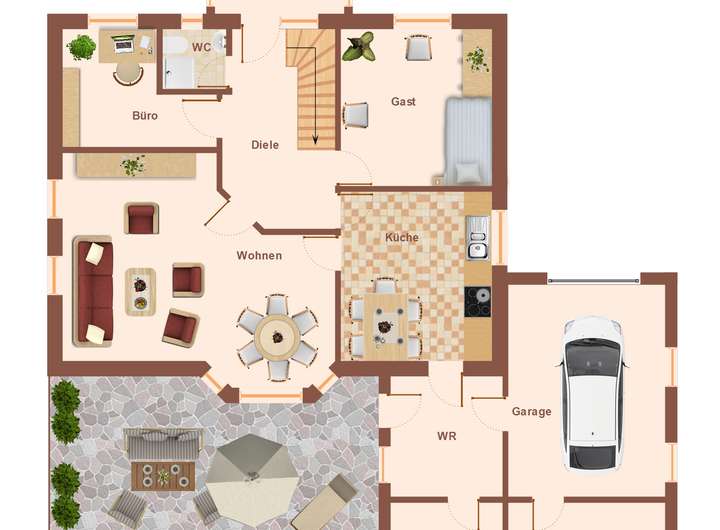 Und so ist das Haus im Erdgeschoss aufgeteilt: