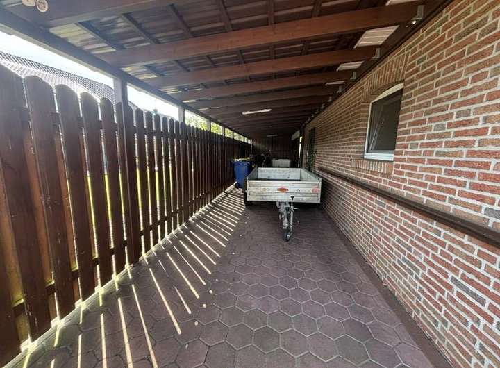 Das Carport ist so groß, dass man Platz für zwei Autos, Gartengeräte und Fahrräder hat.