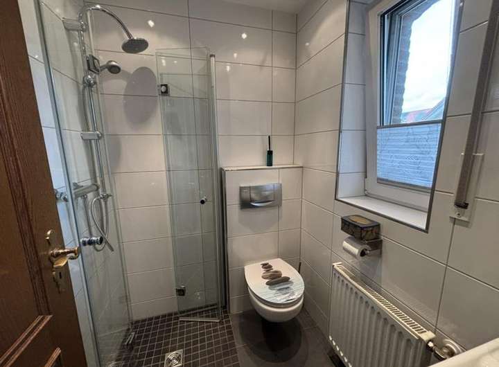Das Gäste-Bad ist mit einer modernen Dusche und einem WC ausgestattet.